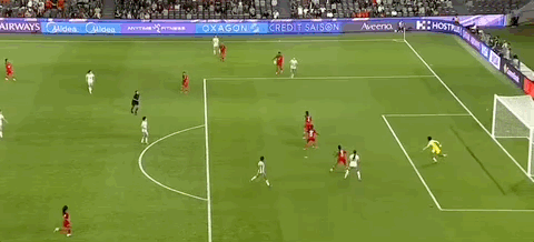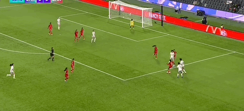 第45+6分钟,王霜尝试一脚任意球直接攻门,角度太正被门将没收