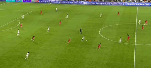 第18分钟,王爱芳送出过顶长传,王霜单刀调整过多被解围
