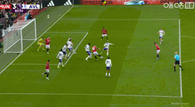第81分钟,博加德连续犯错,库尼亚内切,谢什科射门经折射破门,曼联3-1领先维拉!